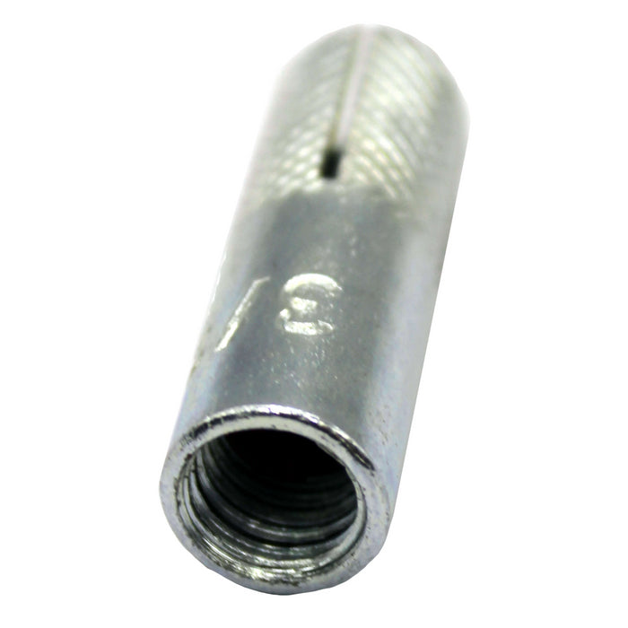 El taquete expansivo con rosca interna Maple Tools, Esta fabricado en acero galvanizado, diseñado para aplicaciones de anclaje removible en superficies sólidas como concreto, ladrillo macizo o piedra. Permite fijaciones seguras mediante tornillos o varillas roscadas, ideales para instalaciones que requieren desmontaje o mantenimiento frecuente.